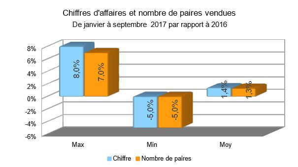 +1,4% de chiffre d'affaires et +1,3% de paires par rapport à la même période de l'année dernière, ce ne sont pas des méga-chiffres, mais ce sont, quoi qu'il en soit, de très bonnes nouvelles, que notre secteur n'avait plus connues depuis longtemps. Il reste à espérer que cette tendance se prolonge dans les prochains mois.