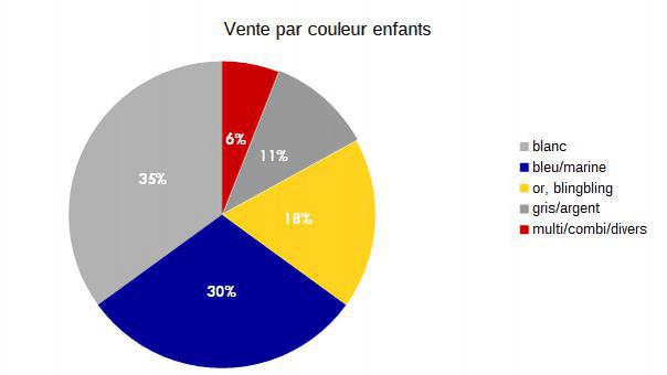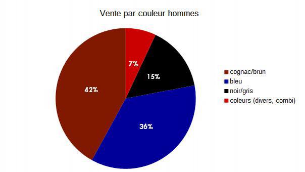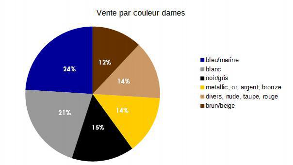 Outre les modèles, la palette de couleurs sentait bon l'été au mois de mars. Chez les dames, le blanc, le bleu et les accents métallisés représentaient presque 60% de tous les modèles vendus. Chez les messieurs, pour la première fois de mémoire d'homme, ce ne sont pas le noir et le brun qui arrivent en première et deuxième position. En effet, le bleu décroche une seconde place avec 36% des ventes et le noir a même reculé pour atteindre seulement 15% des paires vendues.