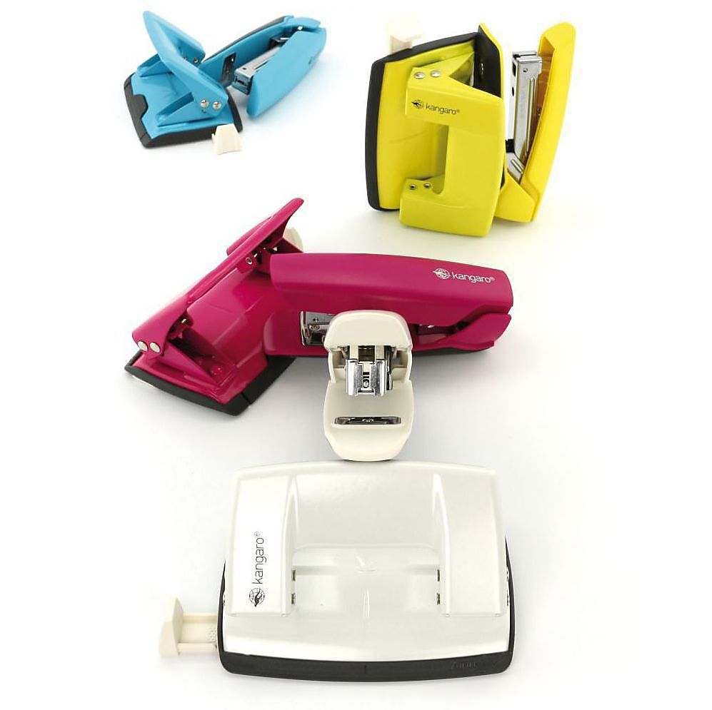 De Aion perforator van metaal heeft een capaciteit van 10 vellen en is voorzien van papieraanleg met standaard papierformaten aangeduid. De Nowa35 nietmachine heeft een metalen geleider met kunststof behuizing en heeft een capaciteit van 15 vellen. Ze is geschikt voor standaard nietjes 24/6 en 26/6. Met geïntegreerde ontnieter aan de achterzijde van het apparaat. Deze set is in 5 kleuren beschikbaar.