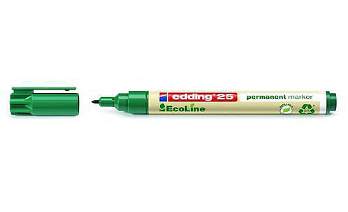 De fijnschrijvende edding 25 overtuigt met zijn milieuvriendelijke materiaal. Minstens 90% van het gebruikte plastic van de marker is van gerecycled materiaal (83% post-consumer). Daarnaast is de marker navulbaar met edding refill inkt, wat je van een eco product mag verwachten. Dankzij de lichtbestendige en wrijfvaste inkt, is de marker geschikt voor toepassingen op bijna alle materialen. De kwaliteit is identiek aan die van vergelijkbare permanente markers uit het standaard assortiment van edding.