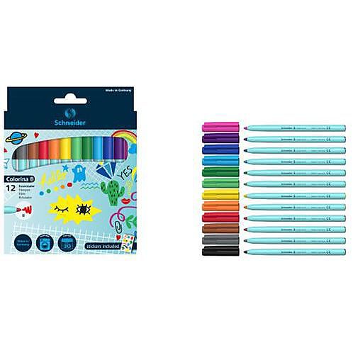 Bij Schneider is de viltstiftenset Colorina B uitgekomen. Vilstiften in 12 briljante kleuren met een brede lijndikte. Uitwasbaar uit de meeste textielsoorten. Kan 30 dagen worden opengelaten zonder uit te drogen. Set inclusief stickervel. Verkrijgbaar in B en F punt.