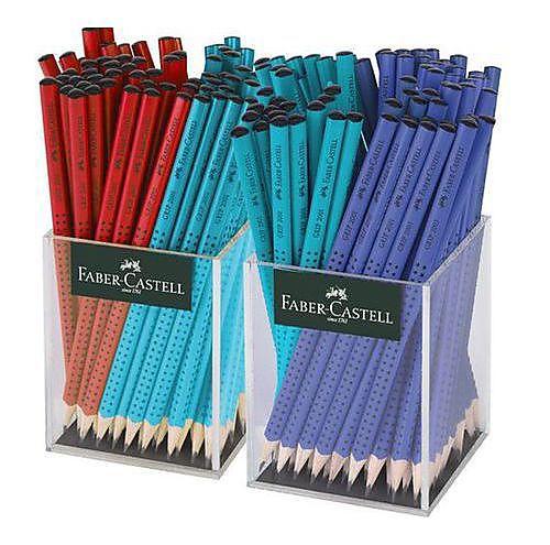 In de Grip 2001 serie zijn 3 nieuwe kleuren uitgekomen: blauw, turkoois en rood in hardheid B. Verkrijgbaar in 2 kokers a 72 stuks. Deze kleuren zijn ook verkrijgbaar als Jumbo Grip, het ideale potlood voor beginners. De gepatenteerde soft-grip zone voorkomt dat je vingers van het potlood glijden. De dikke schacht in een ergonomische driehoekige vorm kan heel goed worden vastgehouden door kleine handen.