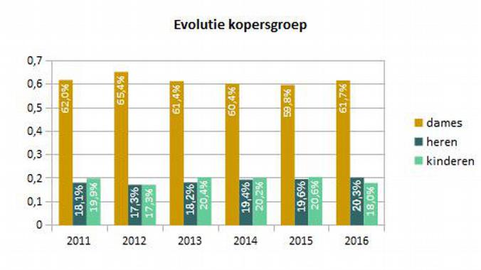 In de traditionele schoenwinkels, waar zowel dames- en heren- als kinderschoenen worden aangeboden, stellen we vast dat zowel de dames als de heren het in 2016 beter hebben gedaan dan het jaar voordien. De omzet in damesschoenen steeg zelfs met bijna 2% (van 59,8% naar 61,7%), bij de heren groeide het marktaandeel van 19,6% naar 20,3%. Dit gebeurde uiteraard ten nadele van de omzet in kinderschoenen, die daalde van 60,6% in 2015 naar 18,0% vorig jaar.