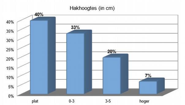 De hakhoogten bij de dames liggen ook een stuk lager dan in mei vorig jaar. Toen waren plat (10%) en 0-3 cm (47%) goed voor 57% van de omzet. In mei 2017 kiest de dame resoluut voor plat (40%) en 0-3 cm (33%).